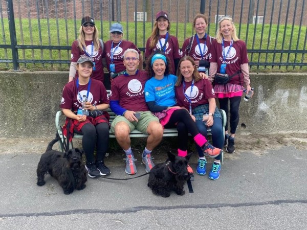 Well, all 12 of us made it round in great time (not that we were racing of course). One or two applications of compeed were required along with a few anti-inflammatories and some tiger balm but we crossed that finished line together. On the other side we were delighted to have Lynne and a group of volunteers from It’s Good 2 Give welcome us with cheers, flags and Elaine’s legendary tablet- how good was that sugar rush!